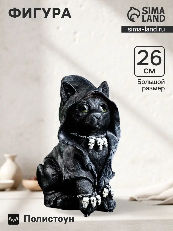 Фигурка полистоун «Котик хиппи», чёрный, 26×12×16 см