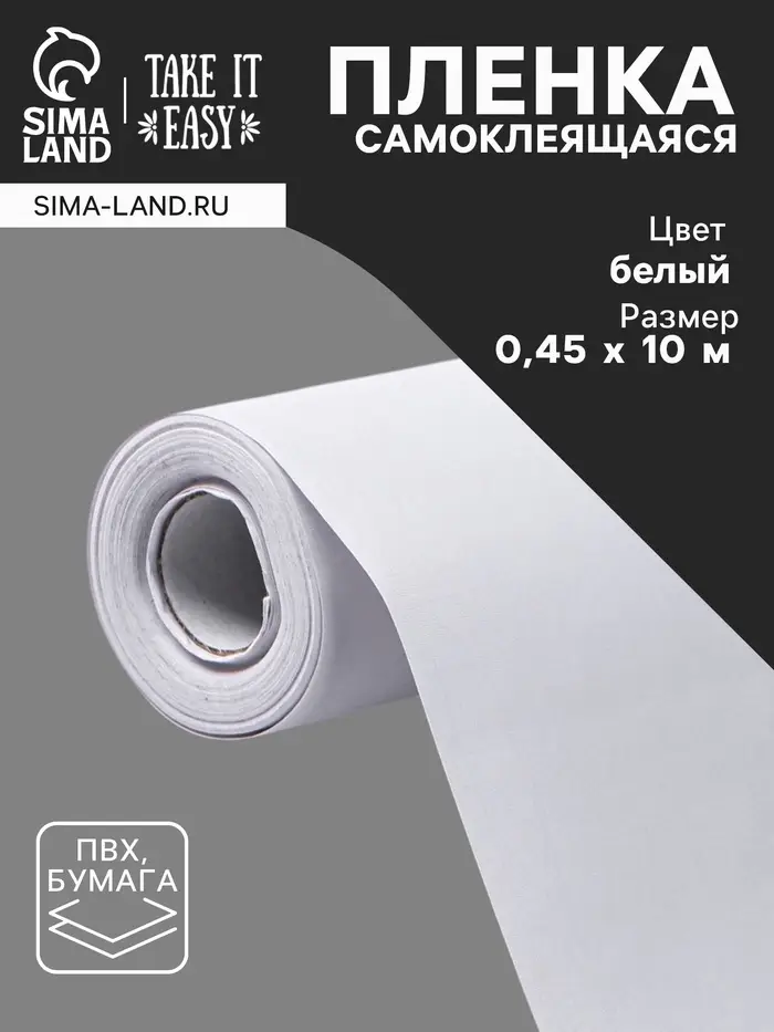 Плёнка самоклеящаяся TAKE IT EASY, рулон, 0.45×10 м, цвет белый