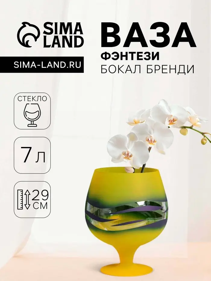 Ваза для цветов «Фэнтези» бренди бокал на ножке, 7 л, h=29 см, d=16.5 см, стекло, МИКС преобразит пространство и как самостоятельный элемент декора. Наполните интерьер уютом!