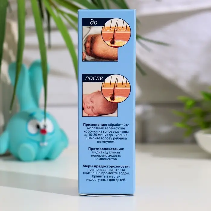 Применение: обработайте масляным гелем сухие корочки на голове малыша за 5–10 минут до купания. Вымойте голову ребёнка и аккуратно удалите корочки гребешком с частыми зубчиками.