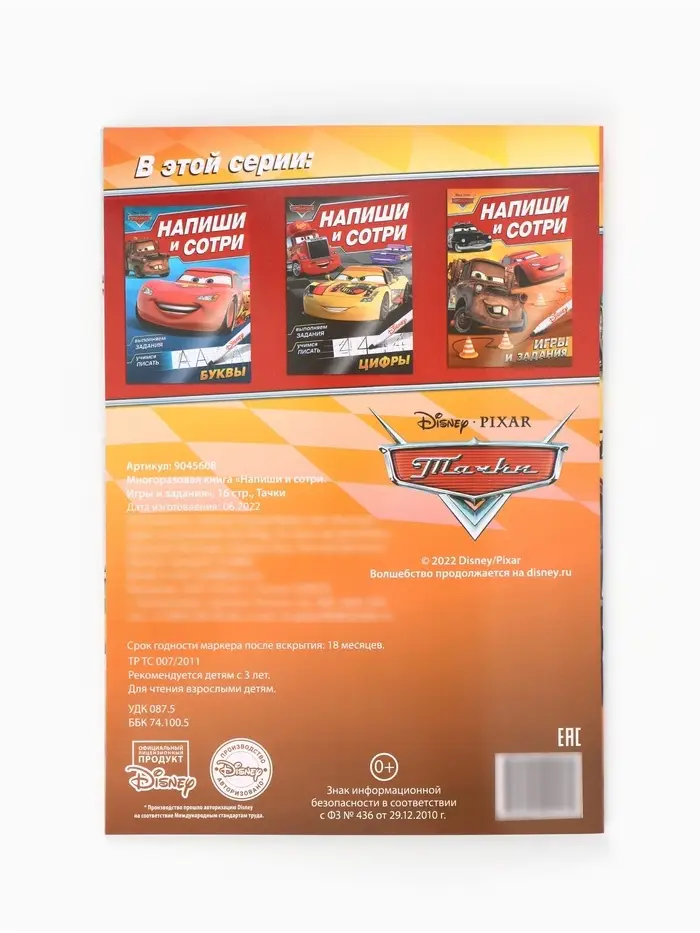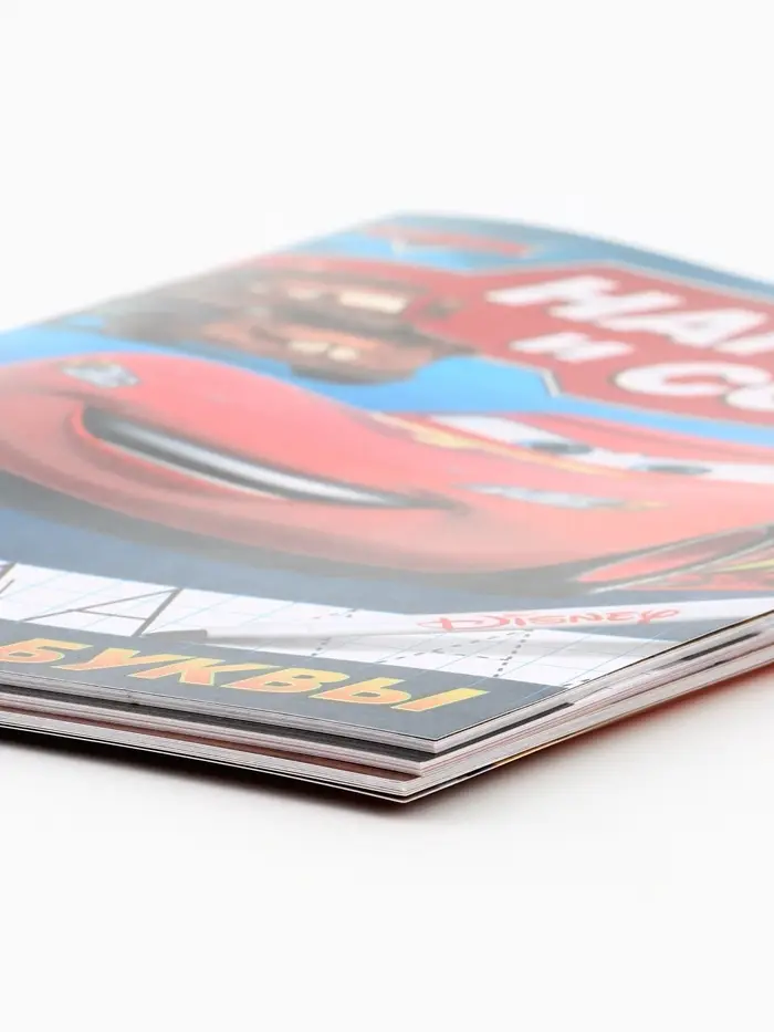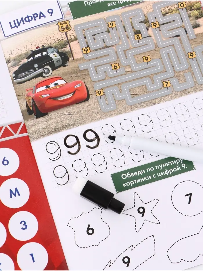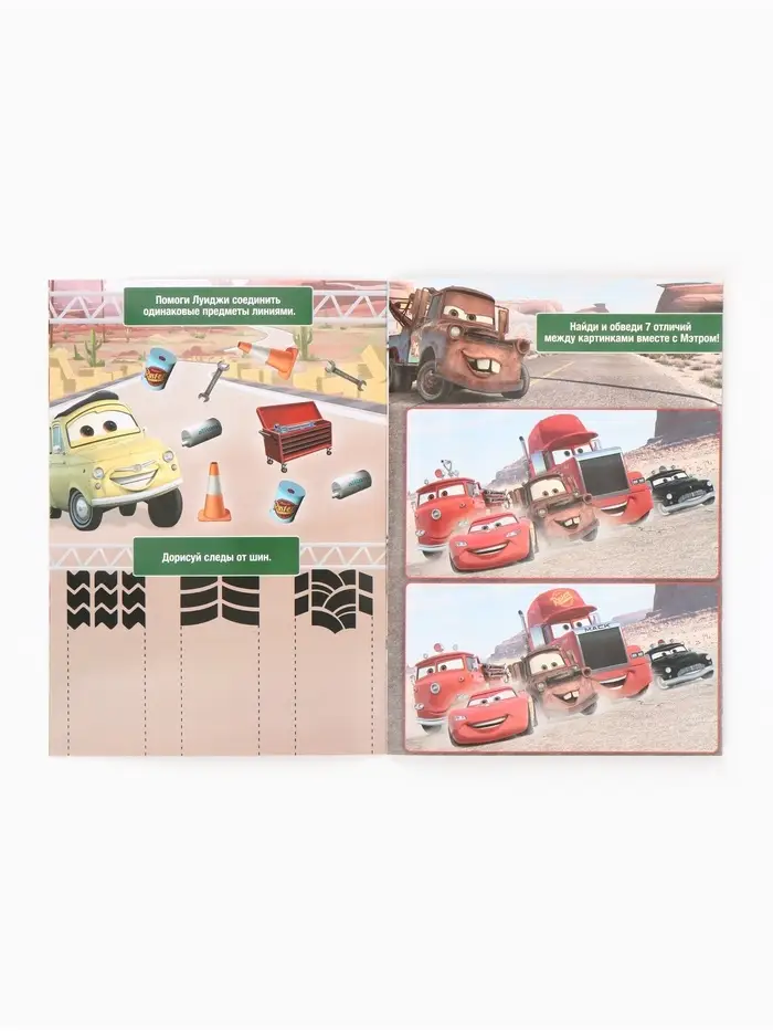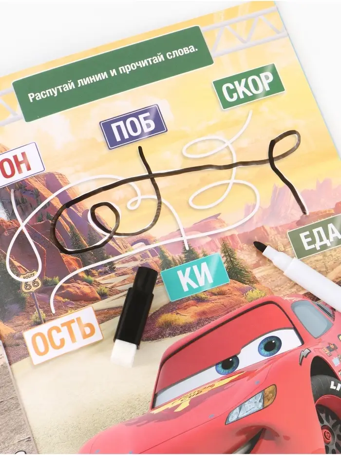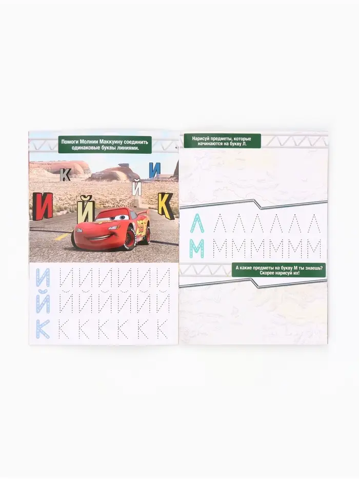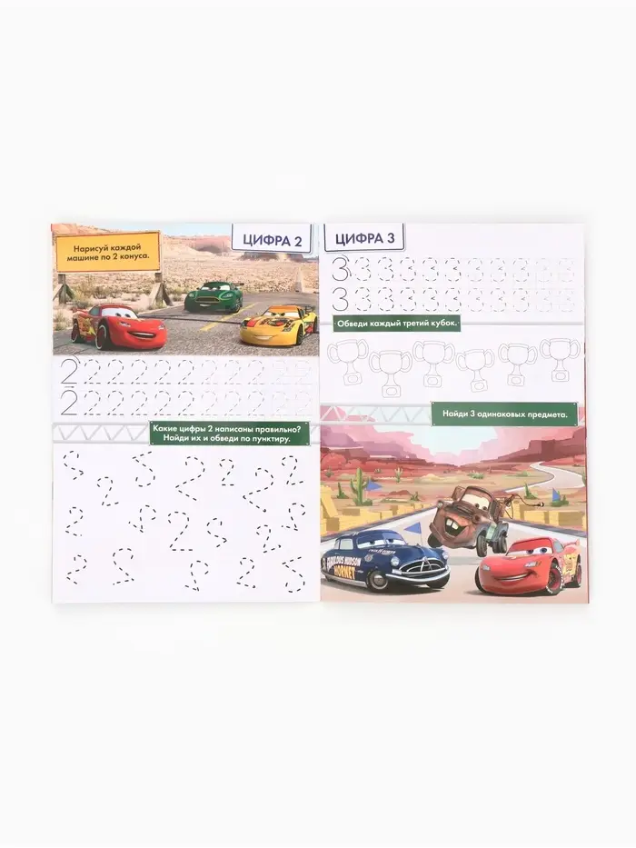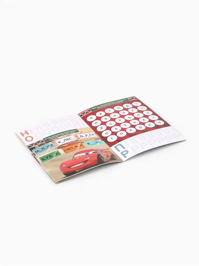 Яркие иллюстрации с любимыми героями мультфильма «Тачки» сделают занятия веселее и интереснее.