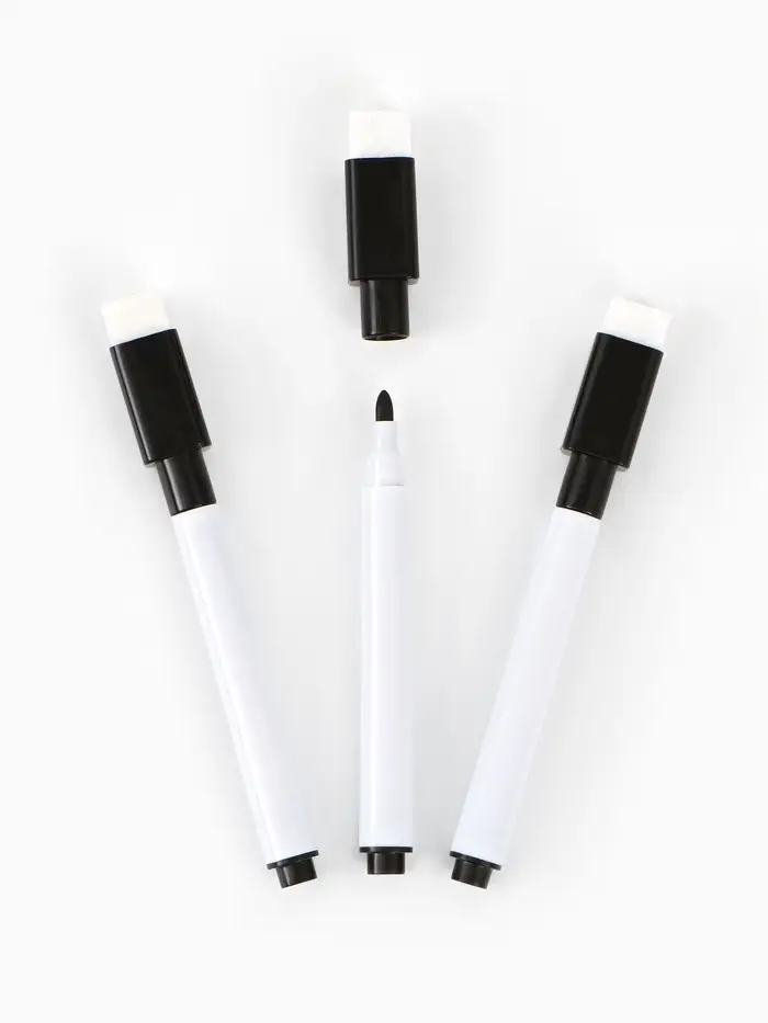 В комплекте есть удобный маркер на водной основе, который легко стирается губкой на колпачке.