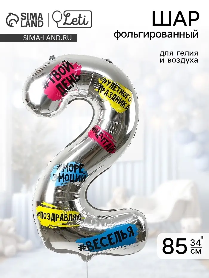 Фольгированный шар в виде цифры с хештегами — оригинальный способ поздравить с днём рождения. При необходимости, соберите число из двух шаров-цифр. Отлично подойдёт в качестве реквизита для фотосессии или оформления помещения.