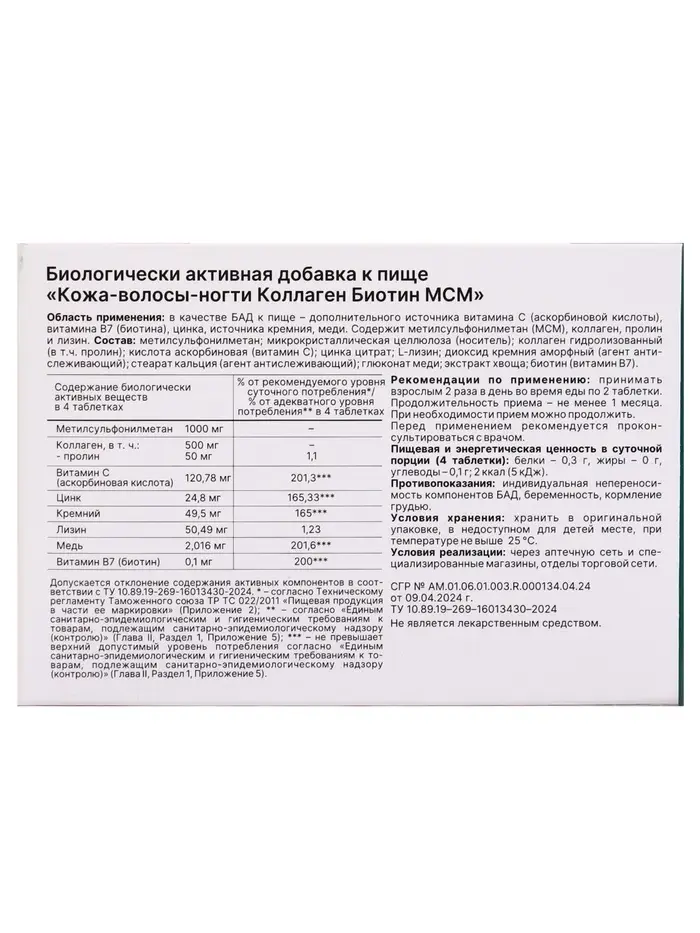 Коллаген Биотин MCM комплексное питание кожи, волос и ногтей, 60 таблеток, 600 мг