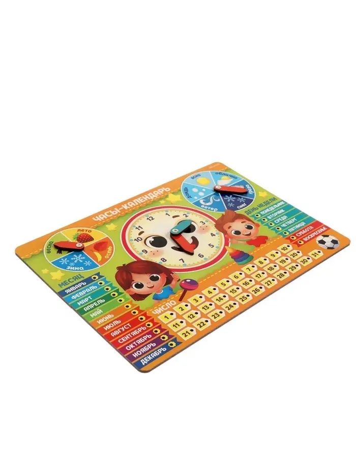 «Часы-календарь. Ребята» помогает ребёнку освоить важные навыки: различать временные промежутки, запоминать дни недели и сезоны, а также развивать внимание, память и кругозор. Играя с элементами, малыш учится ориентироваться во времени, расширять знания об окружающем мире и лучше понимать основы математики. Это не только занимательное занятие, но и источник новых знаний, которые формируют базовые навыки восприятия времени и порядка. Каждый этап игры стимулирует самостоятельность и уверенность в своих силах.