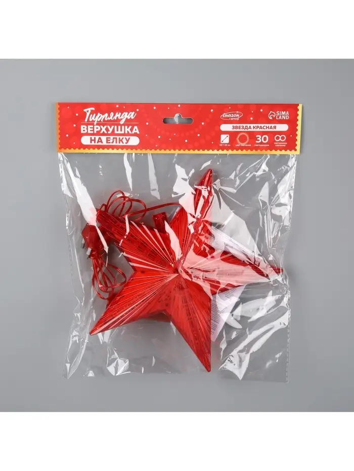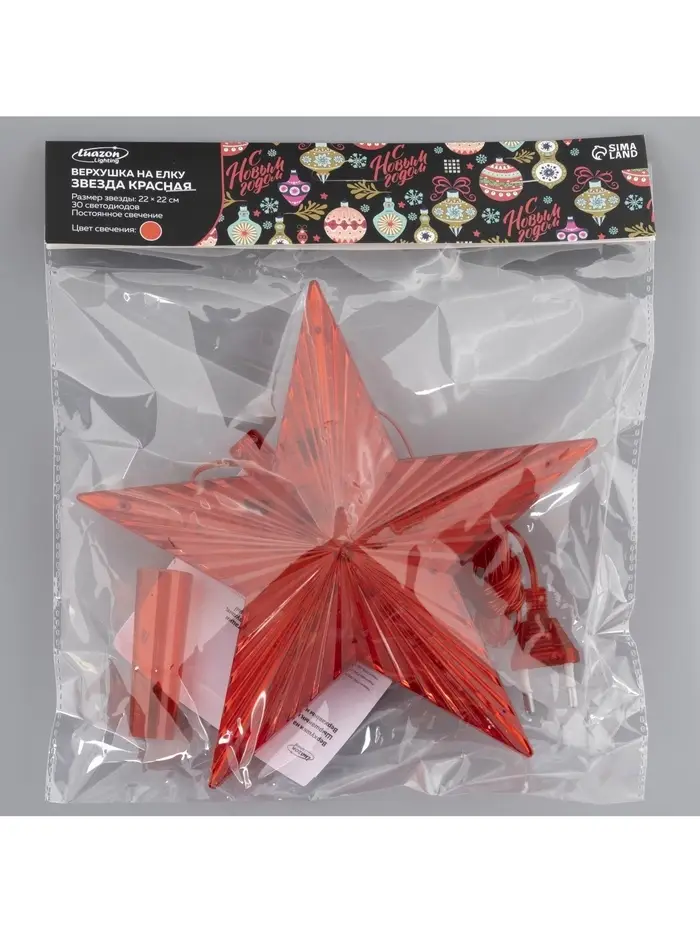 Светодиодная верхушка на ёлку «Звезда красная», 22 см, 30 LED, 220 В, свечение красное