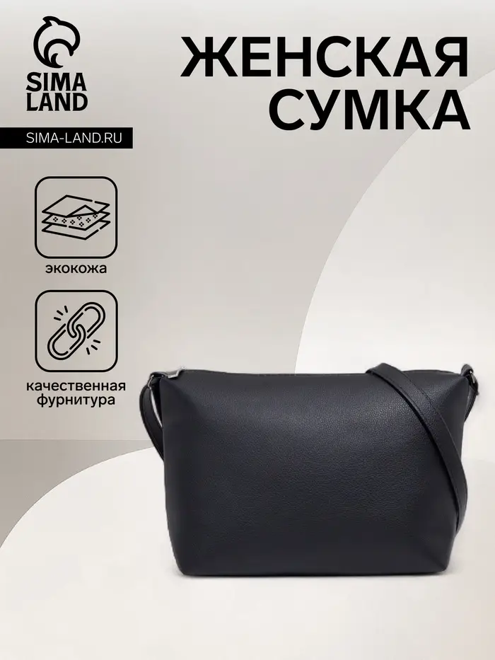 Сумка женская кросс-боди на молнии, 25×8×19 см, чёрная