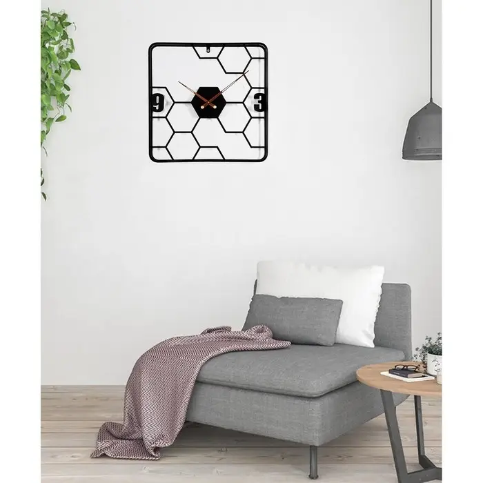Часы настенные интерьерные «Соты», серия:, Лофт, бесшумные, плавный ход, 58×58 см, чёрные, от батарейки 1×АА