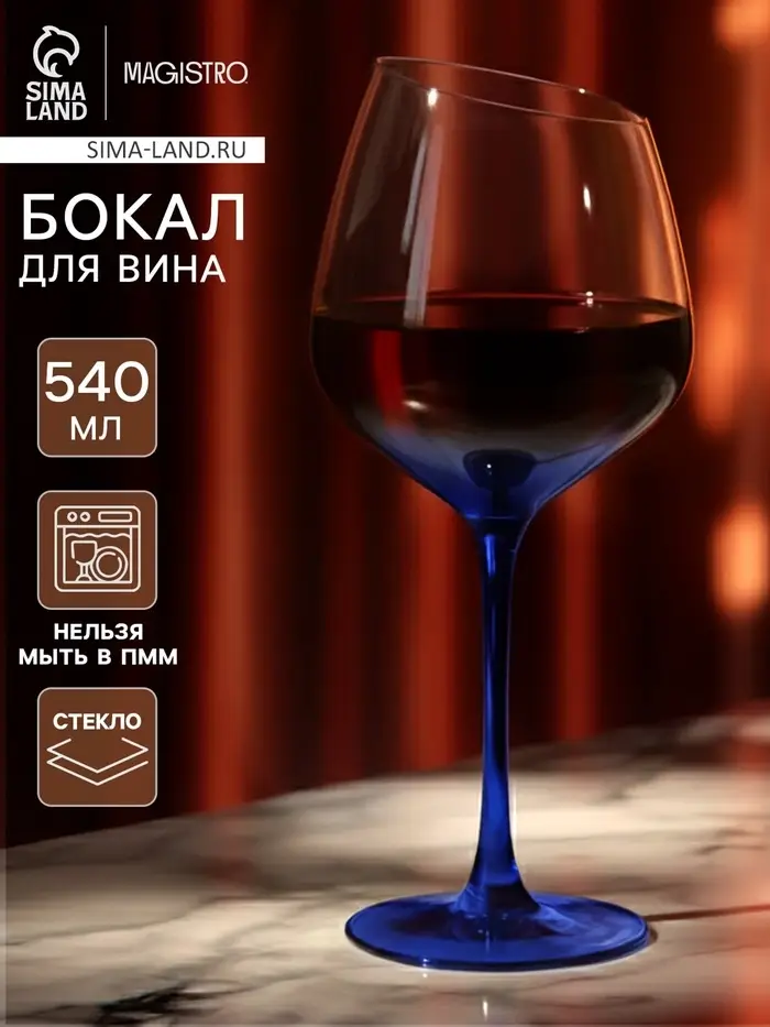 Бокал для вина Magistro «Иллюзия», 540 мл, 10×24 см, стекло, прозрачный, синий