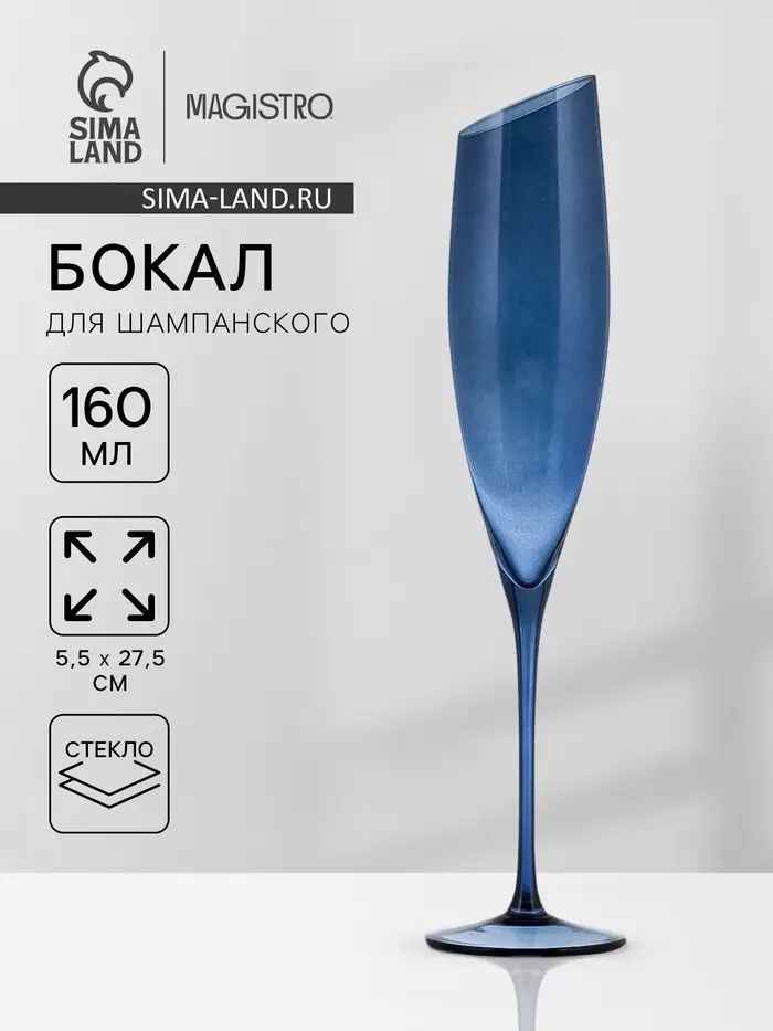 Бокал для шампанского Magistro «Иллюзия», 160 мл, 5.5×27.5 см, стекло, синий