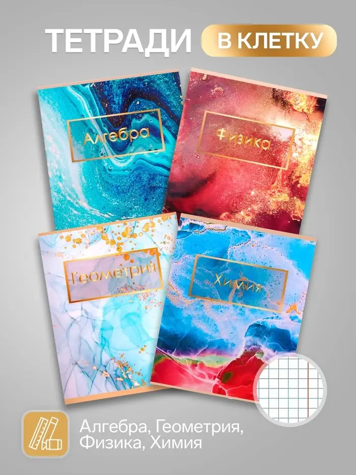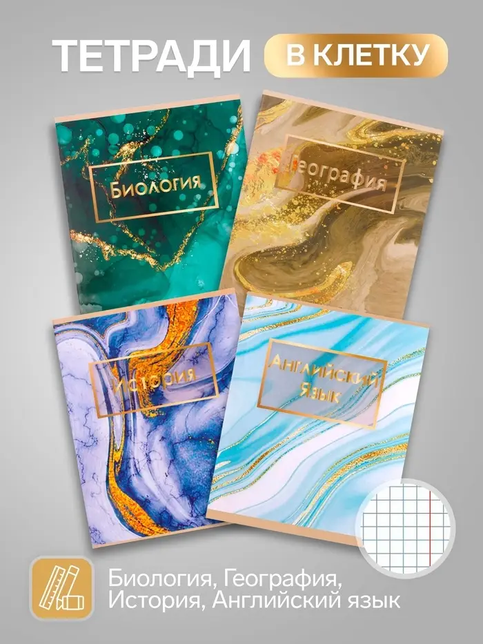 Этот набор мраморных тетрадей станет отличным выбором для школьников и студентов, которые ценят порядок и стиль в учёбе. Комплект охватывает основные учебные дисциплины, помогая легко организовать рабочие материалы.
