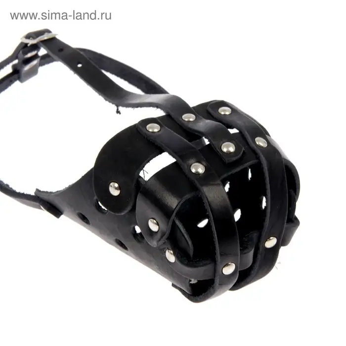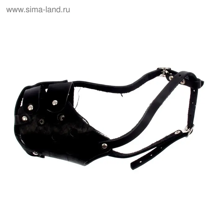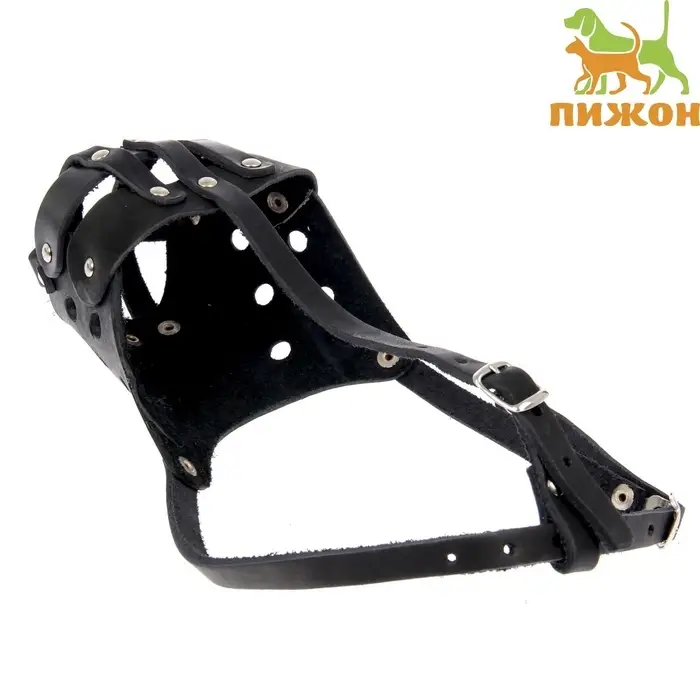 Эргономичный сплошной намордник из натуральной кожи, учитывающий породные особенности собак. Имеет множество вентиляционных отверстий, оснащен дополнительным налобным ремешком.