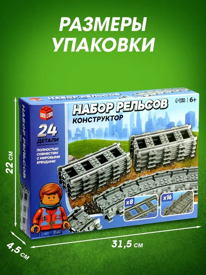 Конструктор ЖД UNICON «Рельсы», 24 элемента