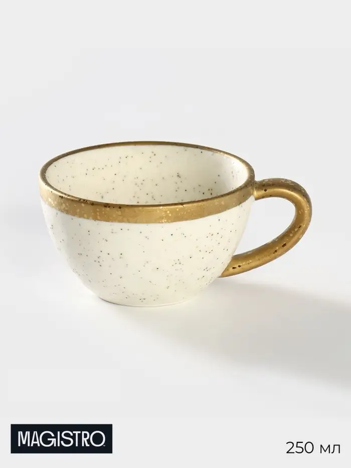 Посуда серии Magistro Poursephona — это современная фарфоровая посуда. В оформлении серии превалируют два цвета – бежевый оттенок фарфора и роскошное золото в виде широкой окантовки предметов. Идеально подходит как для формального обеда, так и для торжеств по особым случаям. Лаконичные формы, золотая окантовка, разноцветные вкрапления придают изделиям из фарфора одновременно необычный и современный вид.