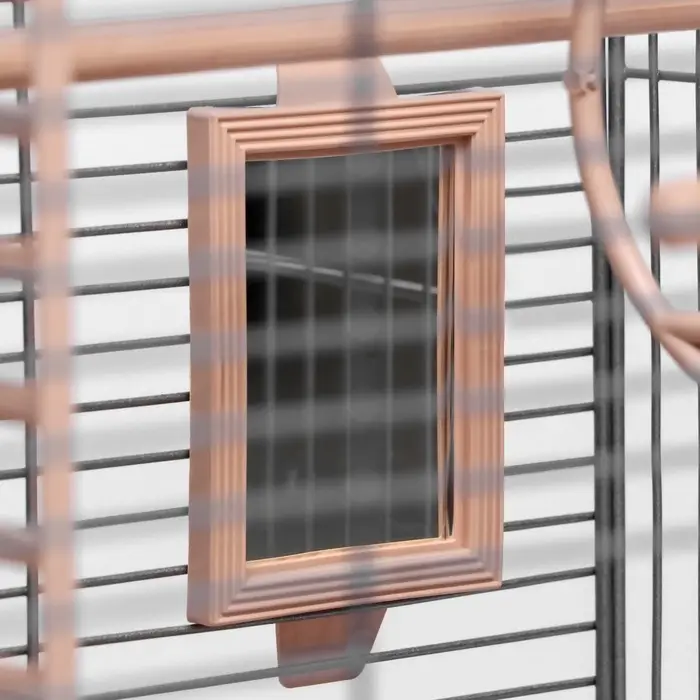 Эта клетка создана для тех, кто хочет сразу дать попугаю всё необходимое: от базовых условий до элементов обогащения среды. Зеркало снижает стресс у одиноких птиц, лесенка стимулирует движение, а компактные габариты позволяют разместить клетку даже в небольшой квартире.
