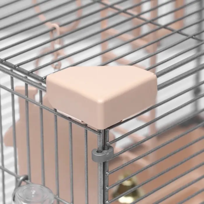 - Безопасные прутья с шагом 11 мм: исключает риск застревания лап или головы и надёжно удерживает питомца внутри.