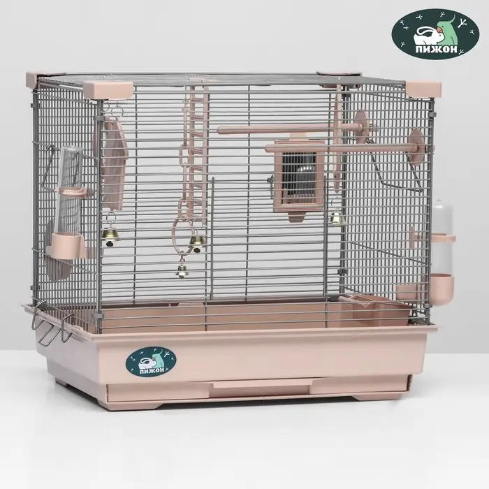 Клетка для птиц «Пижон» №100, разборная, 42×30×37 см, укомплектованная, бежевая