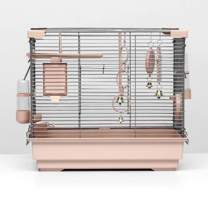 Клетка «Пижон» №100 размером 42×30×37 см подходит для волнистых попугаев, корелл и неразлучников. Прямоугольная форма обеспечивает рациональное использование пространства, а бежевый цвет гармонично вписывается в любой интерьер. В комплекте — кормушка, поилка, жёрдочка, лесенка и зеркало.