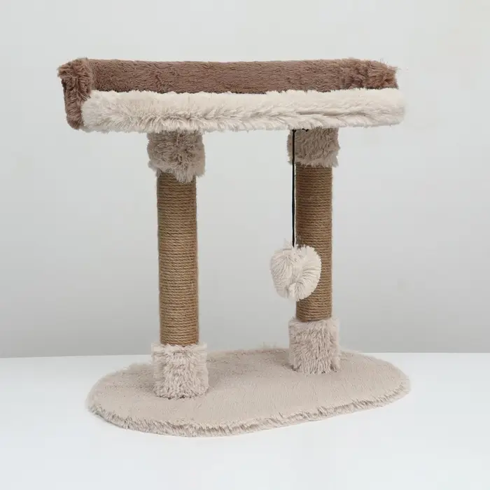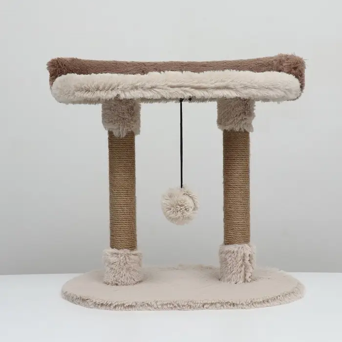 Вашему питомцу будет приятно пользоваться этой когтеточкой благодаря мягкой лежанке и встроенной игрушке-дразнилке. Овальная форма и компактные размеры (58 х 36 х 39 см) позволяют разместить ее в любом уголке квартиры, создавая идеальное место для отдыха и игры кошки. Столбики, обмотанные джутом, идеально подходят для стачивания когтей, что поможет сохранить мебель и обои в целости.