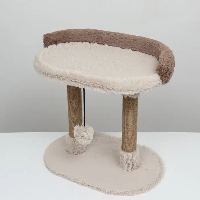 Когтеточка c лежанкой «Пижон», 58×36×39 см, овальная, пушистый мех, джут, бежевая