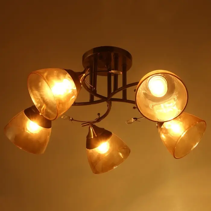 - Эффективное освещение: пять лампы с цоколем E27 обеспечивают мягкое и равномерное освещение площади до 10 м².