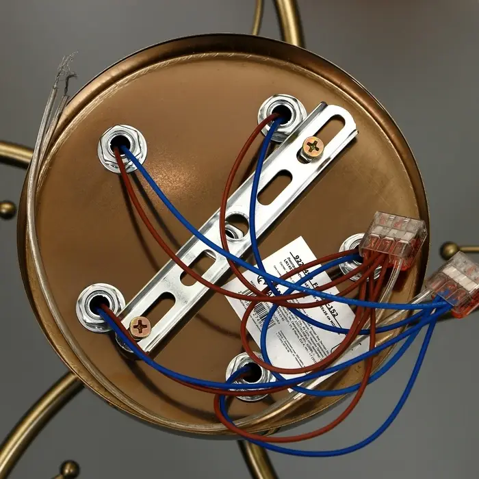 Для поддержания чистоты и сохранения внешнего вида люстры рекомендуется периодически протирать её мягкой сухой тканью. Избегайте использования агрессивных моющих средств, чтобы не повредить поверхность.