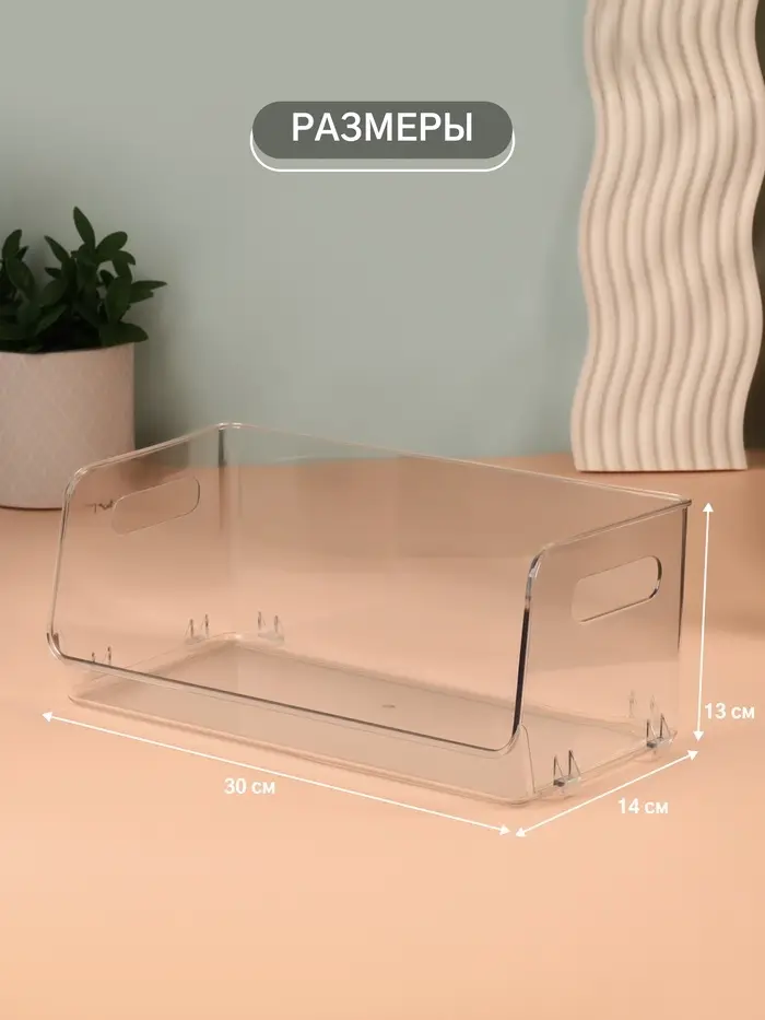 Органайзер для хранения, с ручками, 1 секция, 30×14×13 см, прозрачный