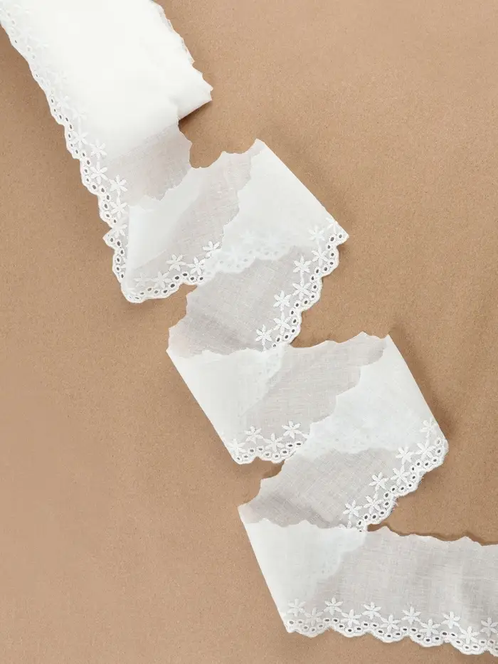 Белое хлопковое кружево «Цветочки» добавит элегантности любому проекту. Благодаря ширине 80 мм и длине 13,7 м, вы сможете создать стильный акцент на одежде, аксессуарах или домашнем декоре. Кружево с цветочными мотивами олицетворяет универсальность и вдохновит на создание уникальных изделий.