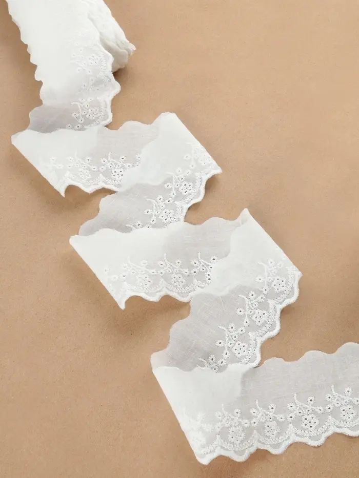 Наше кружево, выполненное в цветочно-растительном стиле, станет незаменимым инструментом для воплощения волшебных идей. Легко сочетается с другими материалами и создаёт атмосферу элегантности, универсальности и уникальности в каждом проекте. Прекрасно подходит для любого типа расходных материалов, от одежды до оформления интерьера, благодаря своим качественным материалам и безупречному дизайну.