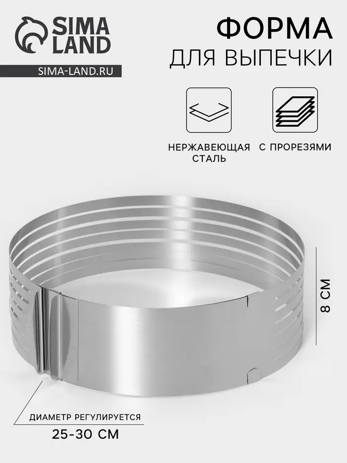 Форма для выкладки и выпечки с регулировкой размера Доляна, d=16-30 см, h=8 см, нержавеющая сталь, серебристая