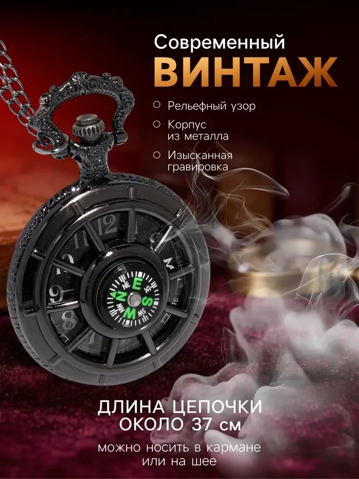 Часы карманные «Классика», кварцевые, d=4.5 см, цепочка 37 см, с компасом