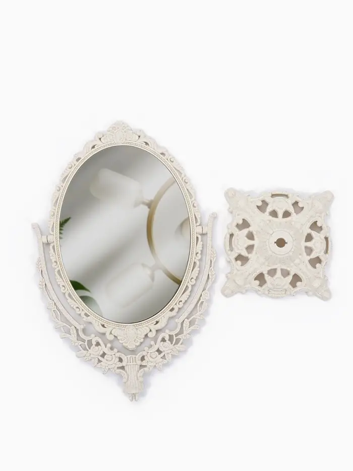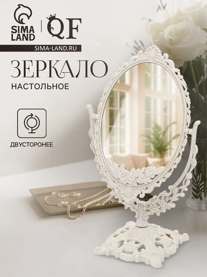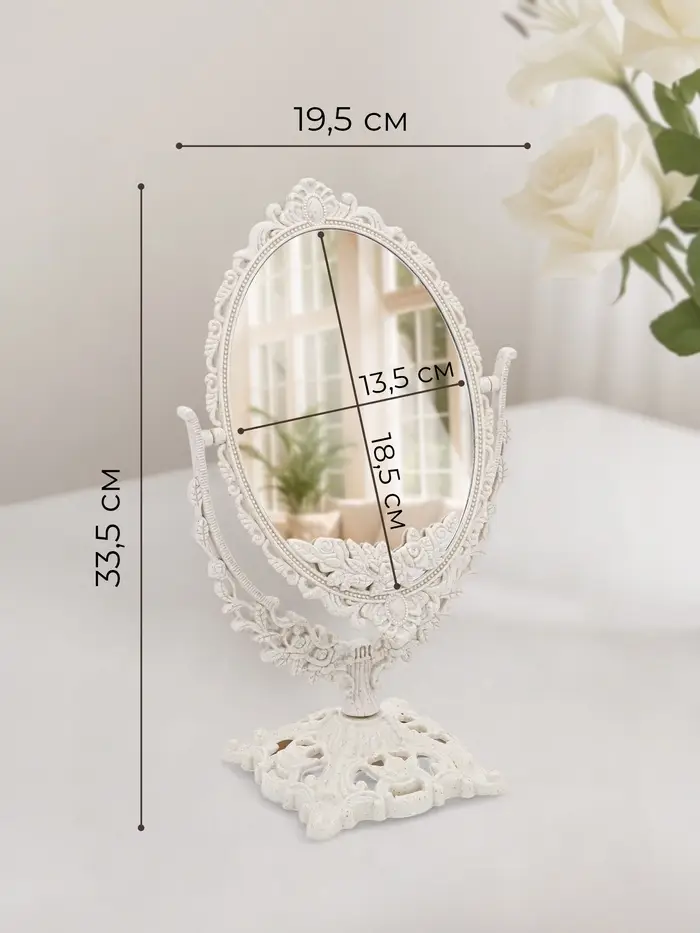 Настольное двустороннее зеркало с овальной формой и бежевой рамой станет удобным помощником для ежедневного ухода и макияжа. Зеркальная поверхность без увеличения, позволяя детально рассмотреть лицо и выполнить точные косметические процедуры. Поворотный механизм обеспечивает комфортный угол обзора без лишних усилий.