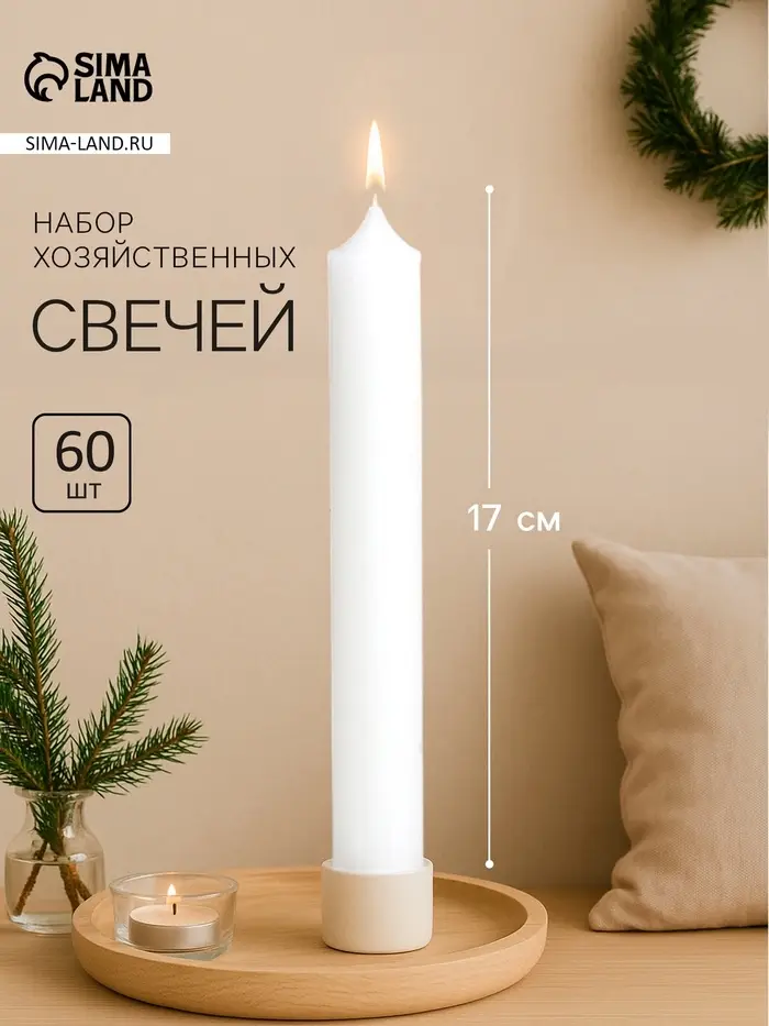 Набор свечей хозяйственных, 1.8×17 см, 40 г, 60 шт.