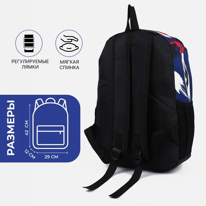 Рюкзак школьный на молнии, с карманами, с принтом, размер 29×12×42 см, синий/красный