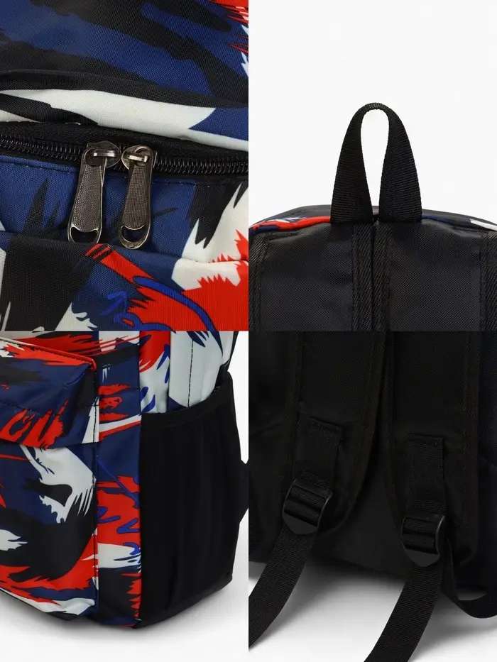 Этот школьный рюкзак с молнией — надёжный спутник для учеников с 5 по 11 класс. Его эргономичная мягкая спинка и две регулируемые лямки создают комфорт даже при полной загрузке. Универсальный дизайн в синих и красных тонах с абстрактным принтом подходит всем, кто ценит стиль и практичность.