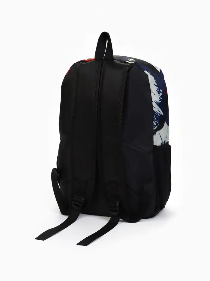 Рюкзак школьный на молнии, с карманами, с принтом, размер 30×13×43 см, чёрный