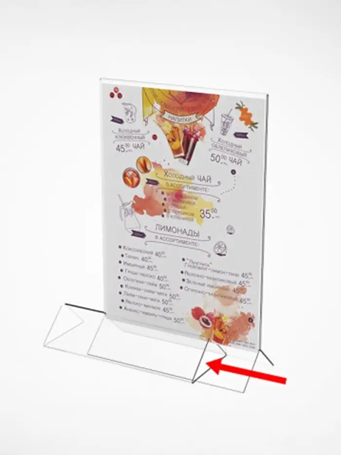 Тейбл-тент А4, оргстекло 2 мм, на деревянной подставке, 21×4×33.5 см