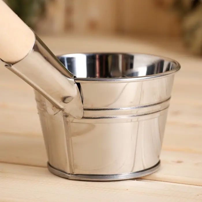 - Оптимальное наполнение: Объем 500 мл делает этот черпак идеальным для регулирования подачи воды на камни в парилке. Удобная горизонтальная рукоять способствует комфортному использованию.