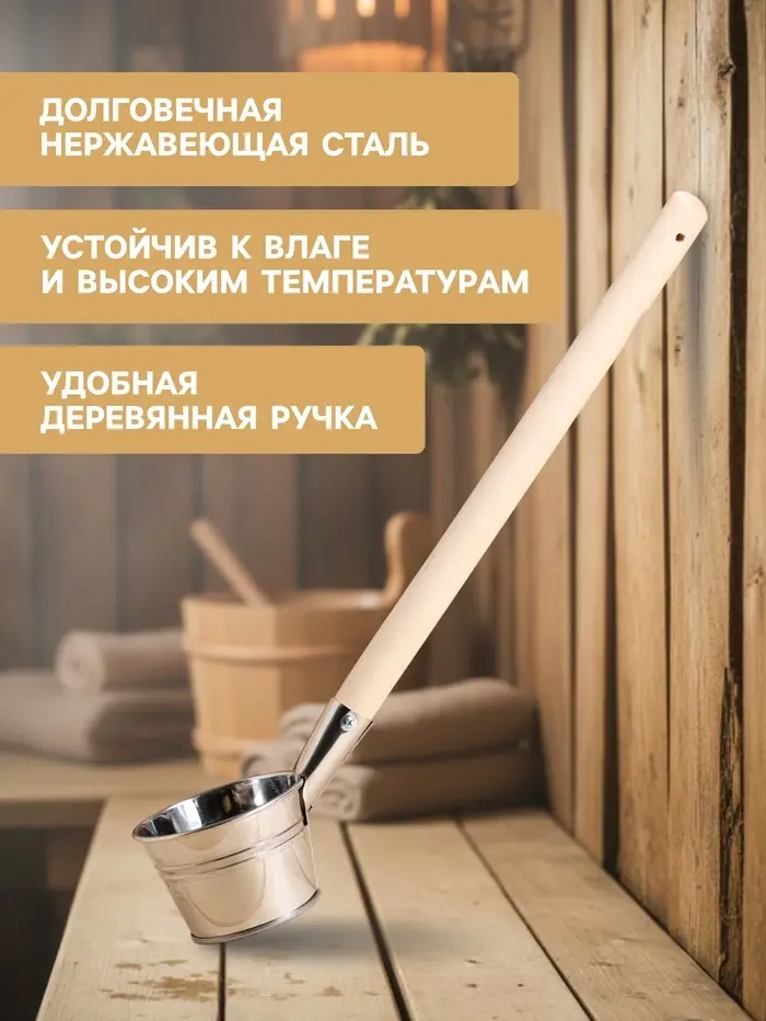 Черпак для бани и сауны из нержавеющей стали с деревянной ручкой от «Добропаровъ» — это надежный инструмент, который придает особую атмосферу вашему отдыху в бане.