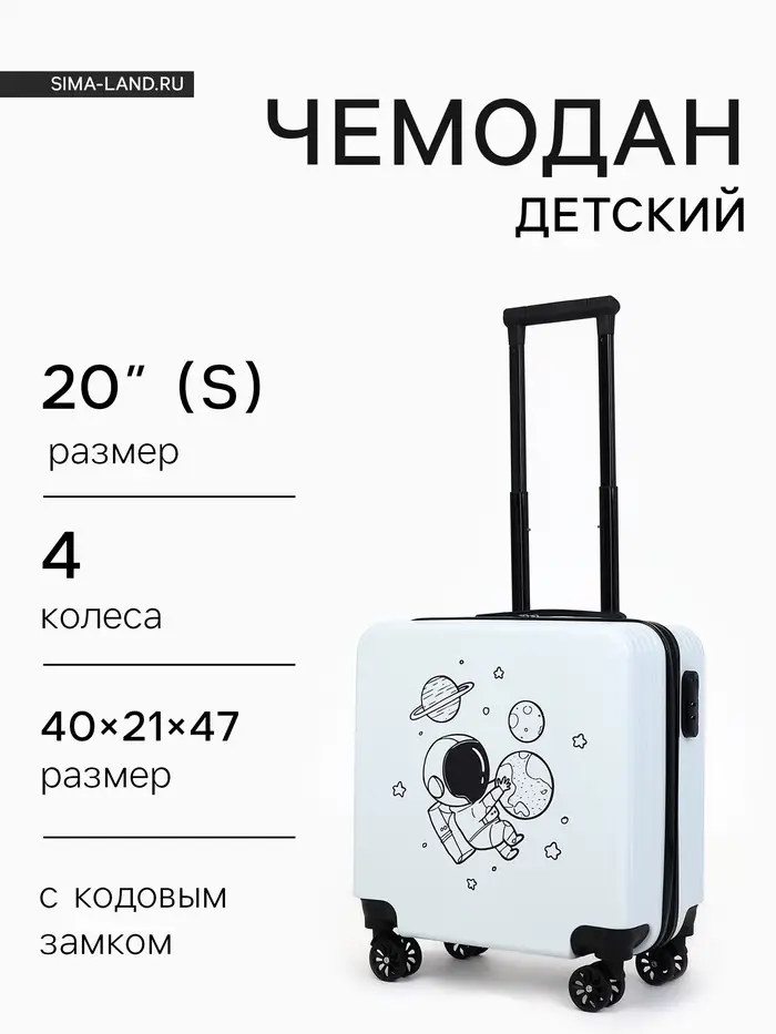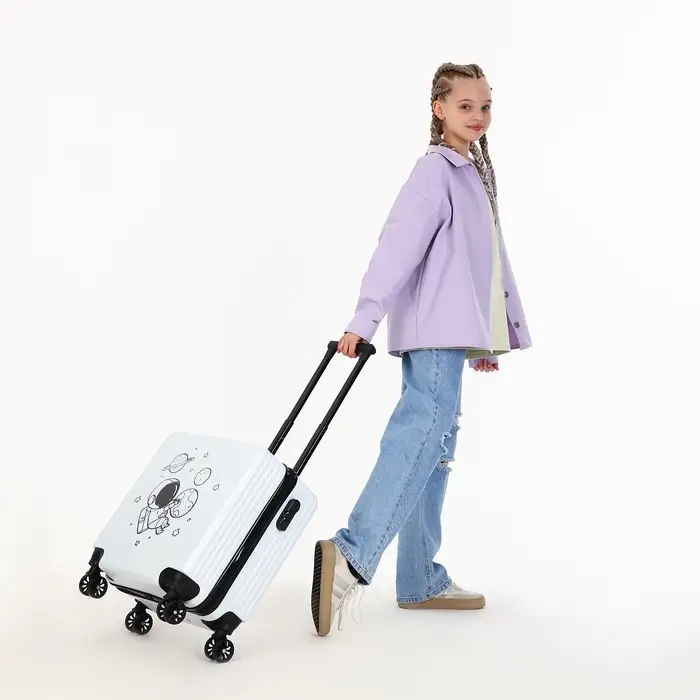 Чемодан детский на колёсах 39 л (S), на молнии, с кодовым замком, 4 колеса, белый