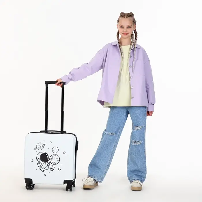 Этот белый детский чемодан создан для юных путешественников, которые ценят самостоятельность. Он вмещает всё необходимое для поездки, оставаясь удобным и манёвренным.