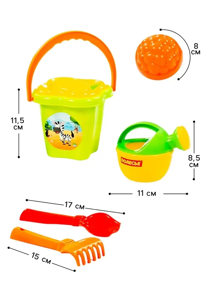 - В набор входят все необходимые инструменты для игр в песочнице. Ребёнок сможет копать, просеивать, строить и украшать свои песочные шедевры.