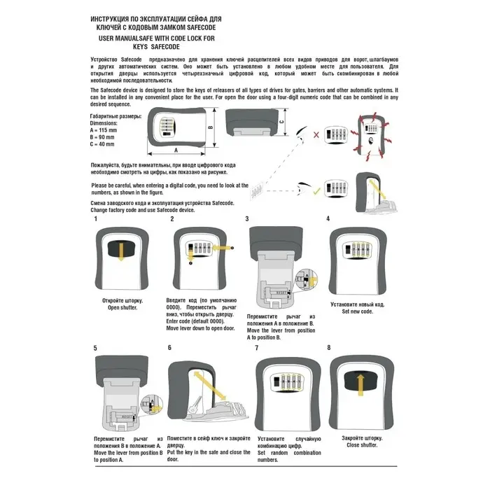 - Защита от вскрытия: Прочный пластиковый корпус устойчив к ударам и попыткам вскрытия подручными средствами. Это надежное решение для хранения ключей от квартиры, офиса или гаража.