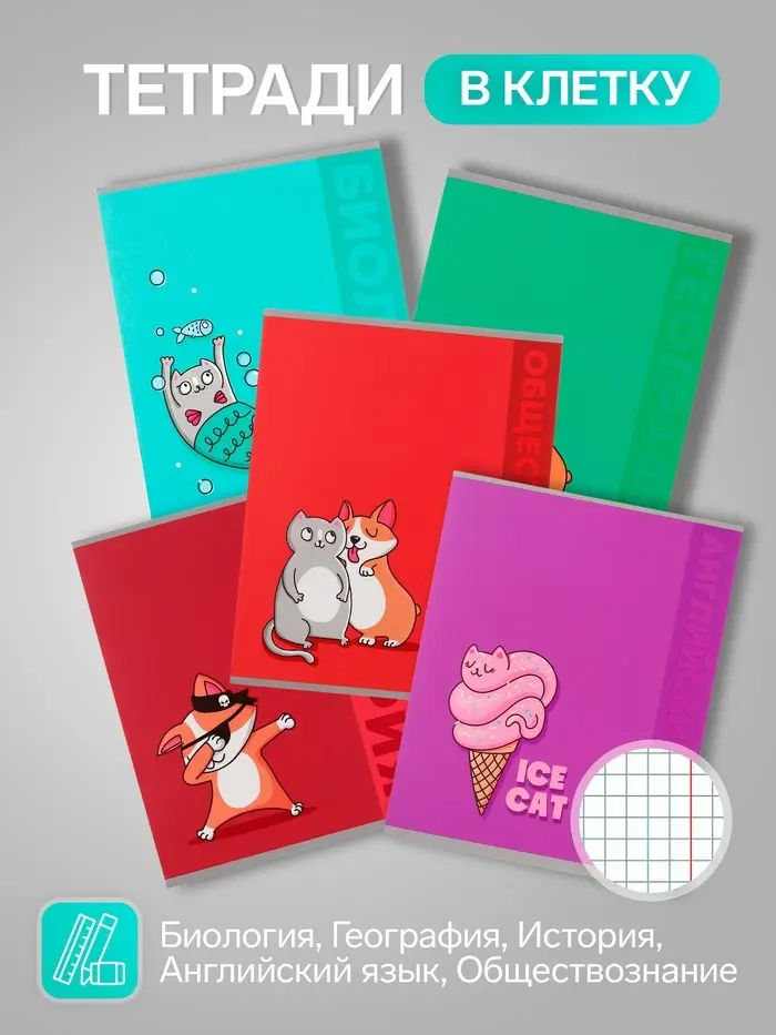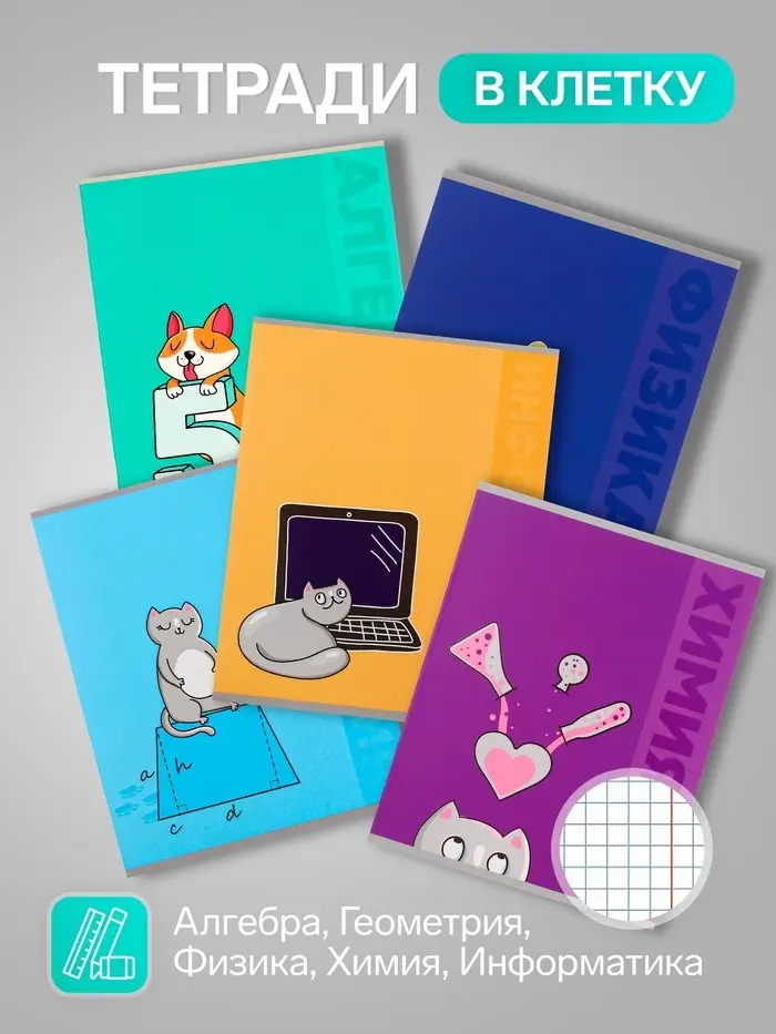 Ребёнок с лёгкостью отличает тетрадь по математике от тетради по биологии — яркие и добрые иллюстрации служат удобными ориентирами. Прочная матовая обложка сохраняет вид на протяжении всего учебного года, а справочные материалы внутри экономят время на уроках. Этот набор станет надёжным помощником в освоении школьной программы.
