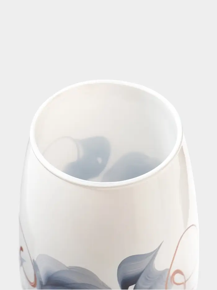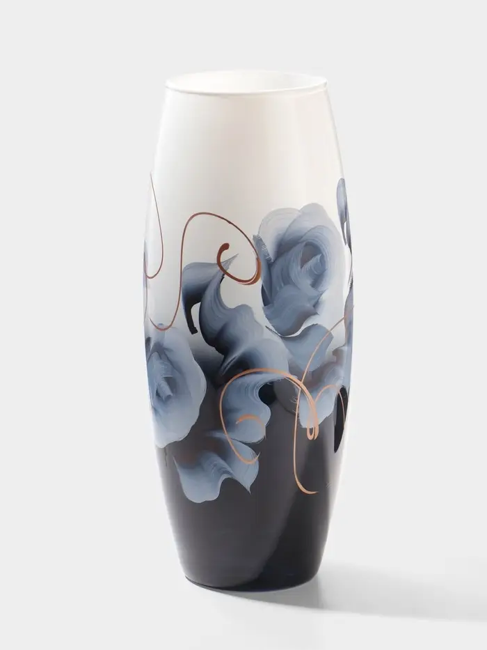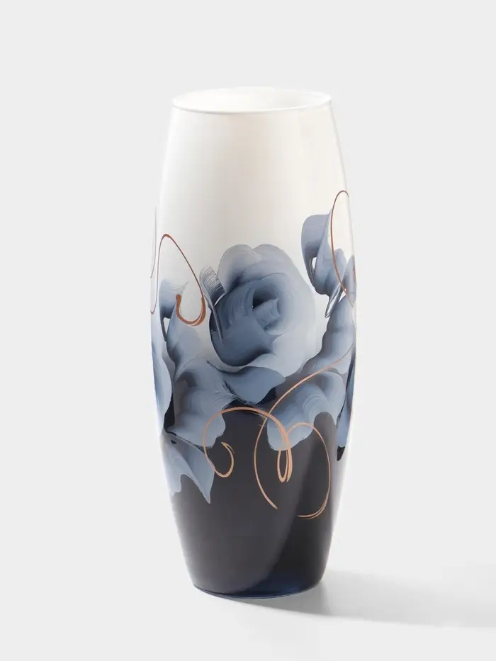 Каждая ваза выдувается мастером. Второй точно такой же не встретить. А случайный пузырёк воздуха или застывшая стеклянная капелька на горлышке лишь подчёркивают её уникальность.