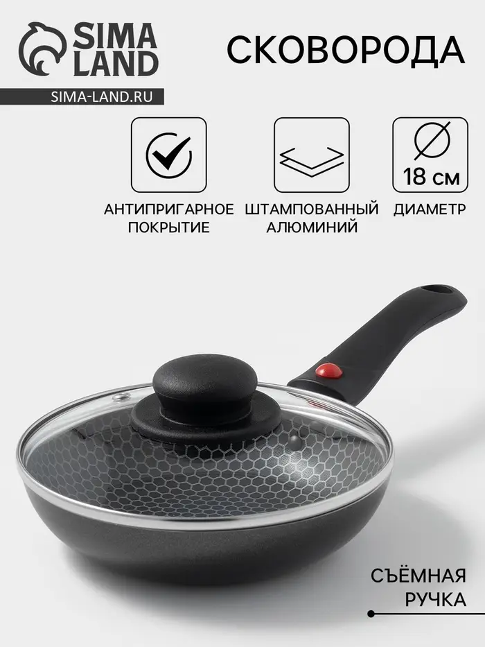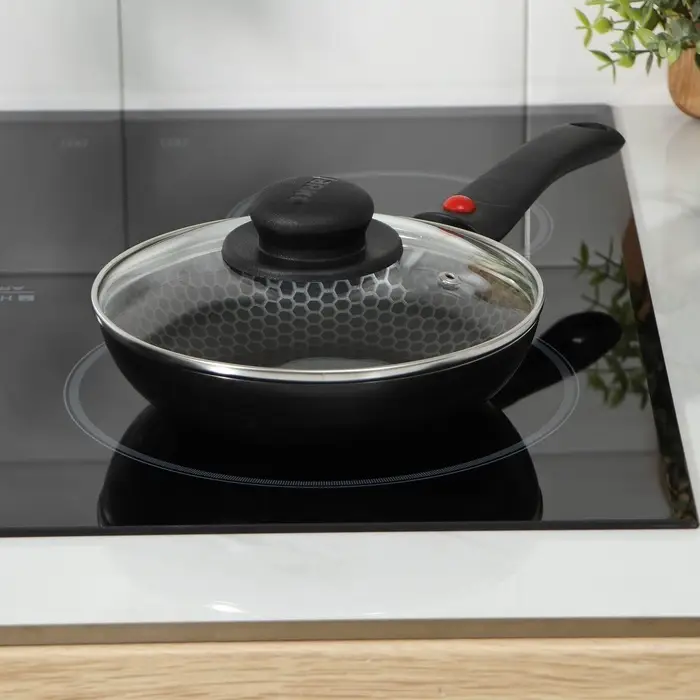 Сковорода Forever, d=18 см, съёмная ручка, стеклянная крышка, антипригарное покрытие, алюминий, чёрная