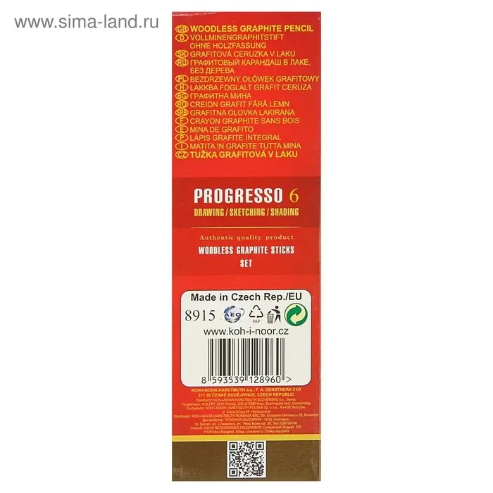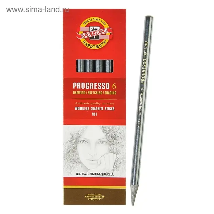 Набор карандашей цельнографитовых Koh-I-Noor. PROGRESSO 8915, 6 штук, разной твёрдости, круглый