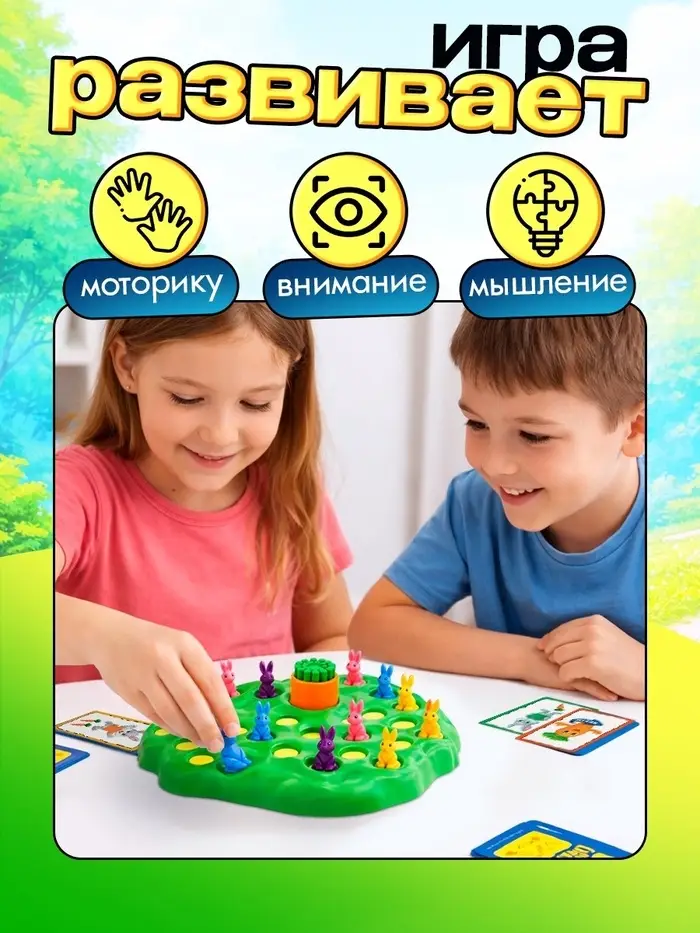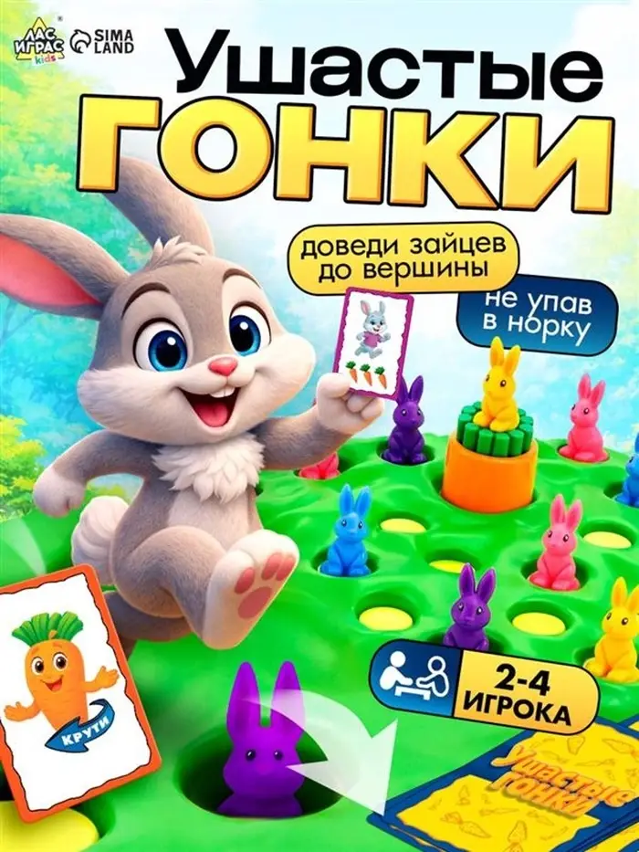 Настольная игра на внимательность «Ушастые гонки», 24 карточки, 16 зайцев, 2-4 игрока, 4+