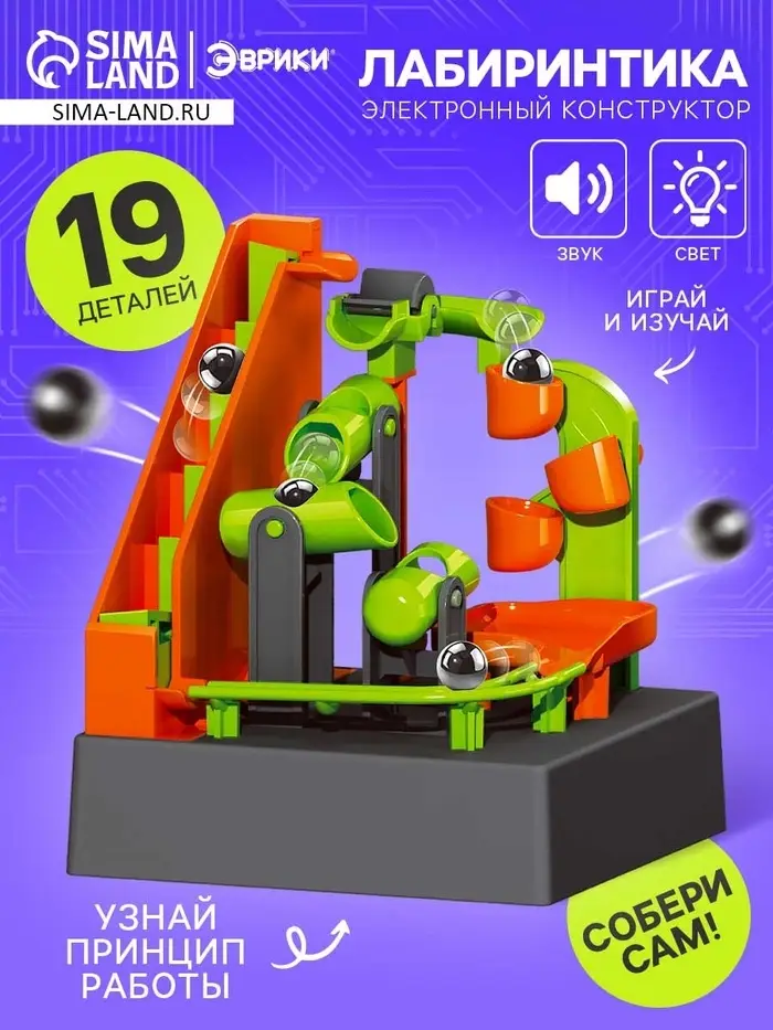 Конструктор электронный «Лабиринтика», световые и звуковые эффекты, 19 деталей