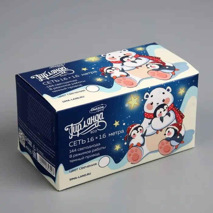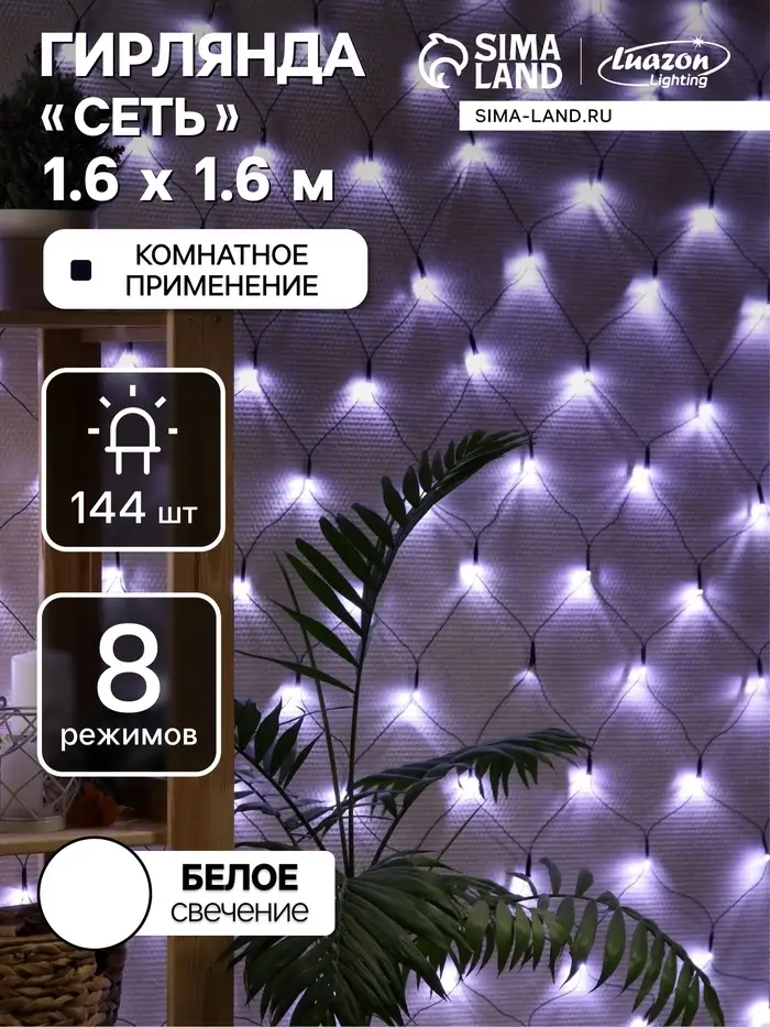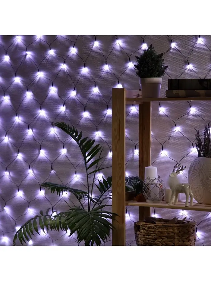 Гирлянда «Сеть» 1.6×1.6 м, IP20, тёмная нить, 144 LED, 8 режимов, 220 В, свечение белое